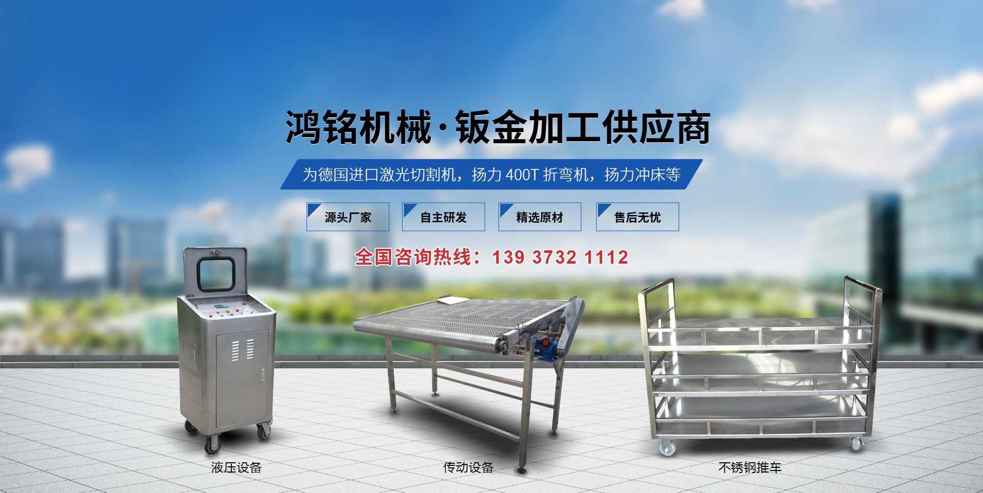 新鄉市鴻銘機械有限公司成立于2009年,占地面積8000平方米,位于新鄉市衛濱區南環路,地理位置優越,交通便利。 本公司設備為德國進口激光切割機,揚力400T折彎機,揚力沖床等設備。主要從事鈑金加工、及生產各類金屬鈑金零部件及生產各類沖壓零件。  公司長期與國內外大型企業合作深受新老客戶的贊賞,同時公司對外承接各類鈑金加工業務(標準鈑金件與非標鈑金件),先后為多家知名企業配套加工鈑金,公司也可根據客戶的需要代為設計,尤其對精度、外觀要求高的產品有獨到的生產經驗。 我們本著"科學管理、全員參與、持續改進、滿足客戶"的質量方針來生產我們的每一件產品。為了在市場競爭中立于不敗之地,公司以質量求生存,以設備保精度。歡迎新老客戶到本公司實地考察?! ”酒髽I建立以來,以"質量保證,信譽保證,交貨及時,價格合理"為宗旨,贏得了客戶的一致好評。面對市場經濟的挑戰,公司將以產品和服務參與市場競爭,為廣大客戶提供鈑金加工平臺。